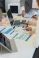 • A close-up image shows the accounting team holding pens and pointing to graphs, analyzing marketing plans using calculators during a business brainstorming session.