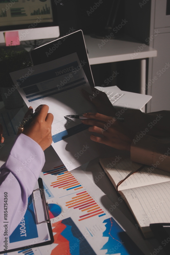 Do Biura Rachunkowego - Above table with finance papers, graphs and big data during teamwork meeting with accounting or... #1854754360