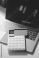 • Calculator on a dark background, plastic cards and banknotes
