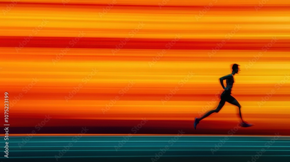 • Runner sprinting on a track, motion blur emphasizing fast movement
