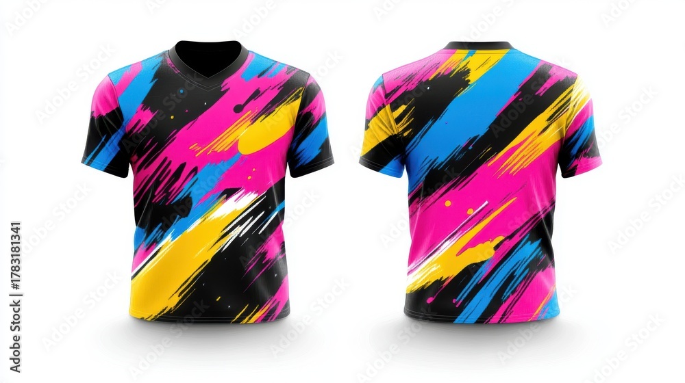 • high-energy brushstroke jersey, featuring expressive dynamic lines, on isolated on white background