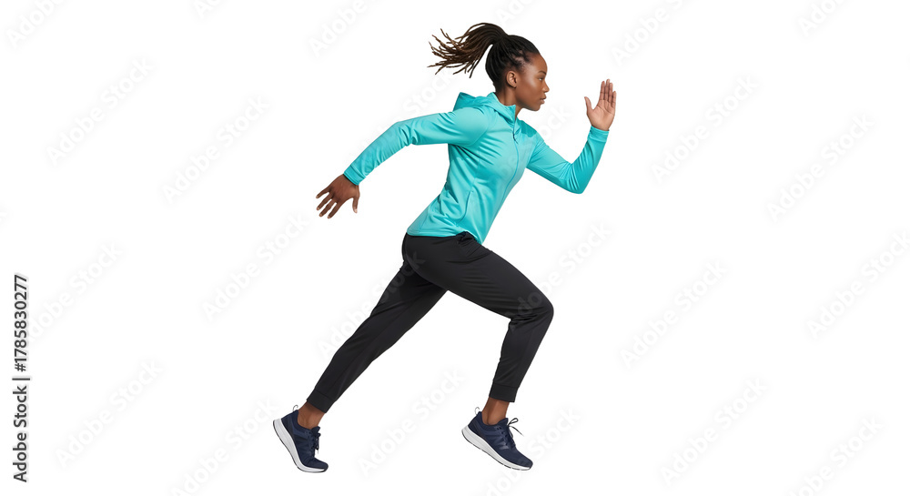 • Athletic woman running fast in sportswear isolated on white background, fitness and exercise concept, perfect for sports advertising
