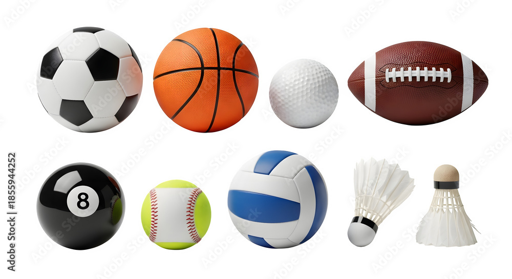 Do Fitness Clubu - Collection of various sports balls and equipment isolated on transparent background #1855944252