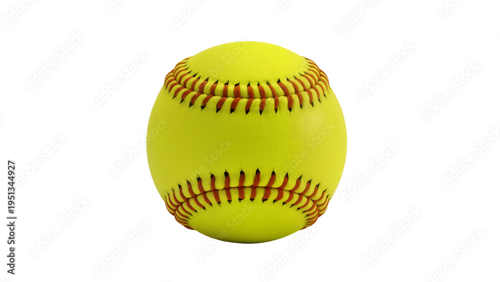• Isolated bright yellow softball with classic red stitching, perfect for a competitive sports game