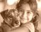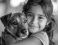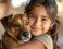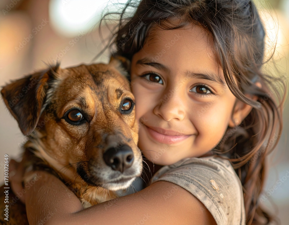 • Dziewczynka przytula psa – dzieci i zwierzęta domowe