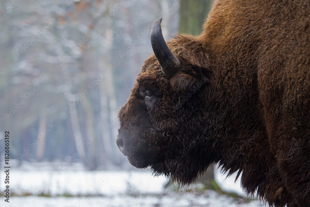 Do Przedszkola - Zimowy portret żubra w starym lesie #1826865192