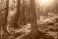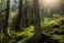 • Promienie słońca przebijające się przez korony drzew w lesie