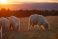 Na Hali Majerz w Hałuszowej. Stado owiec na polu o wschodzie słońca.