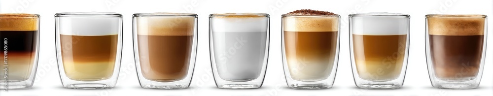 Do Restauracji - Row of various layered coffee drinks in clear double-walled glasses #1709865080
