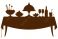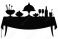 • Festive Winter Dinner Table Vector Illustration – Elegant Christmas and New Year Celebration Feast Silhouette with Food, Drinks, and Decor, Holiday Party Dining Scene in Minimalist Style