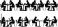 • Set of black vector silhouettes illustrating diverse couples and pairs of men and women sitting at small cafe tables, talking, eating, and drinking, representing social interaction and dining.