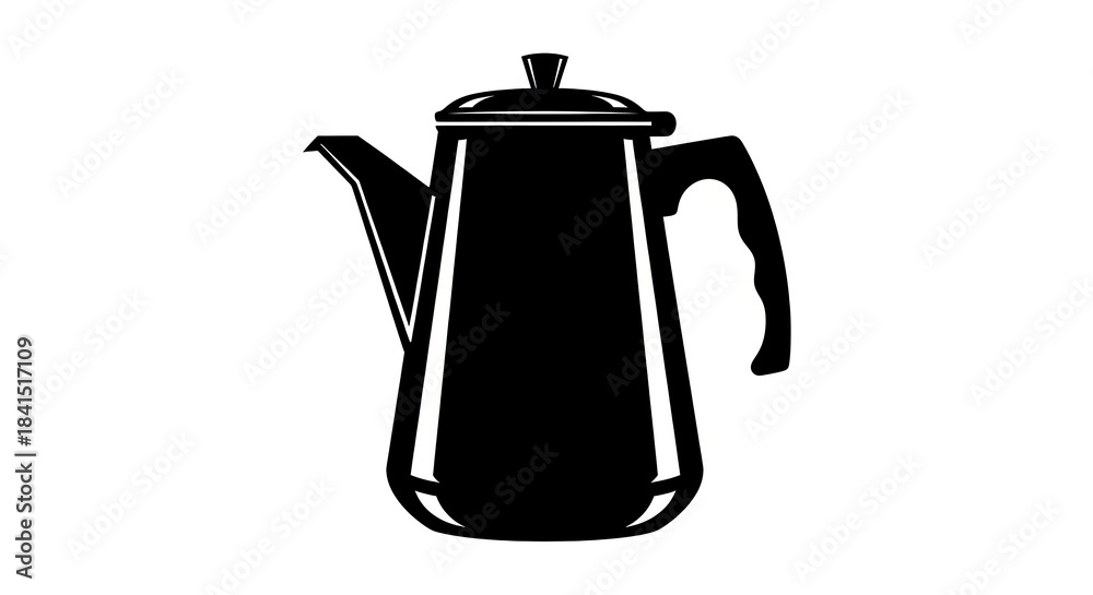 • Elegant Black Coffee Pot Illustration - A Timeless Design for Coffee Lovers.