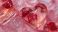 • Close-up of heart-shaped ice cubes in glasses of pink lemonade, festive Valentine’s summer drink visual