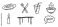 • Set of hand-drawn food and restaurant icons including a meal, cutlery, drink, soup, candle, and table in a simple black and white doodle sketch style for menu design