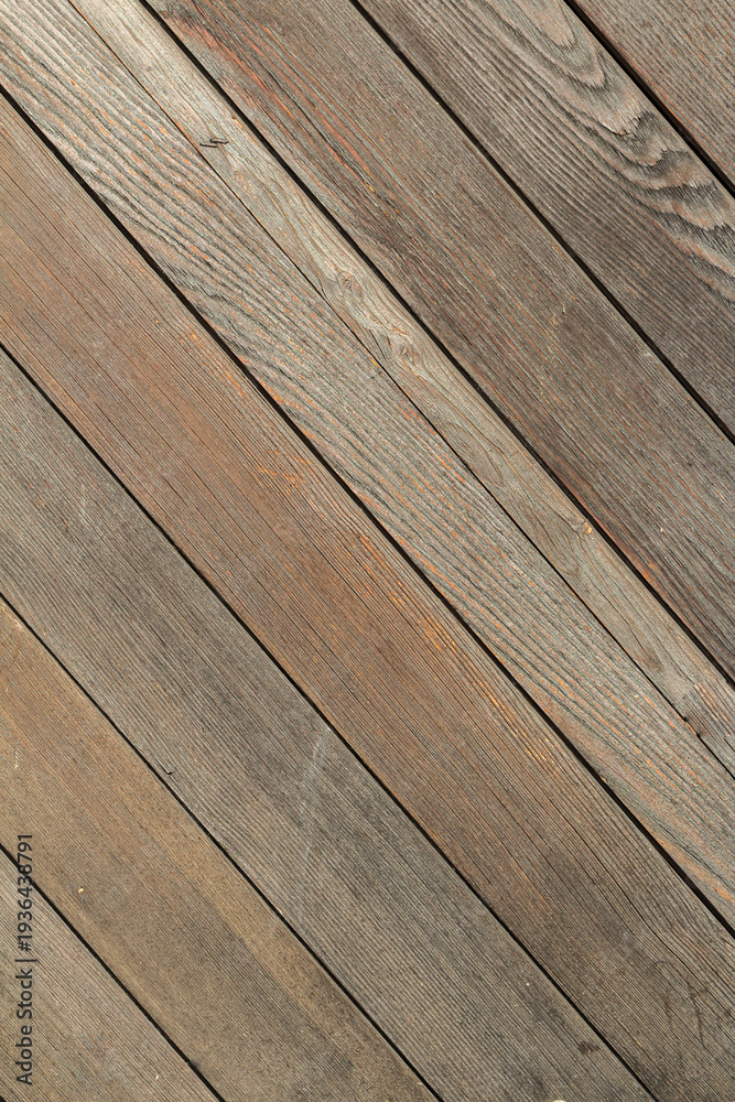 Drewniane deski ułożone po skosie, naturalne usłojenie i postarzana powierzchnia, jasnobrązowa tekstura tła do projektów.