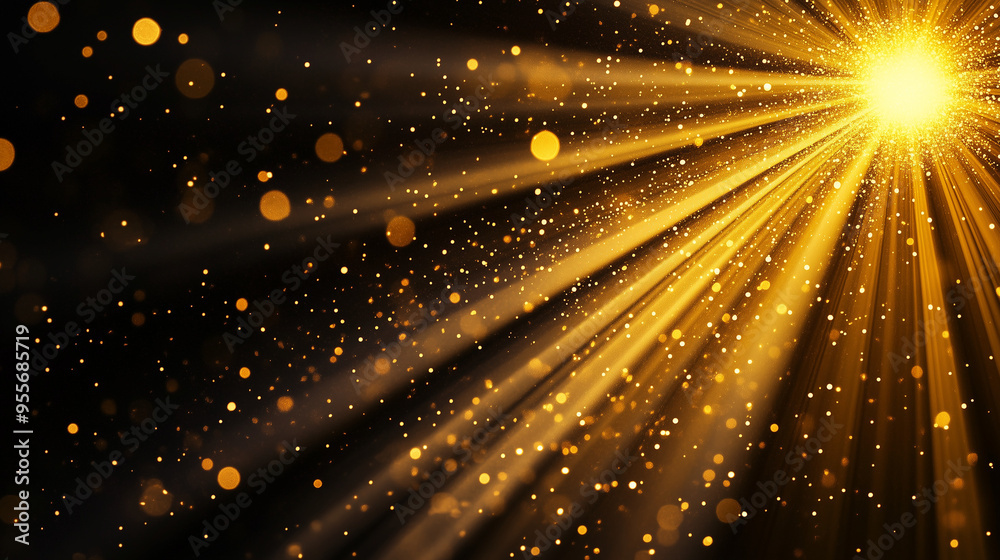 Do Salonu - Promienie słońca emitujące intensywne światło na głębokim czarnym tle. Efekt glow podkreśla moc i... #955685719