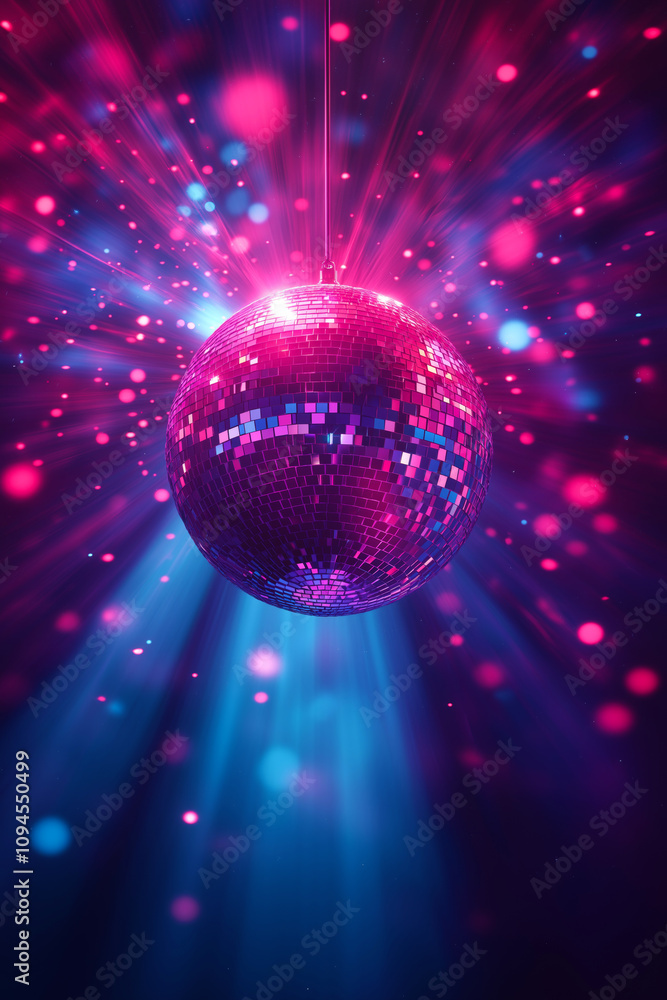 Disco ball. Party lights. Purple and blue shiny disco ball