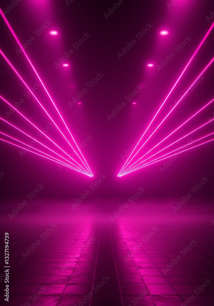 Do Szkoły Tańca - light trails in the tunnel. 4K background of a room full of neon lasers #1327194739