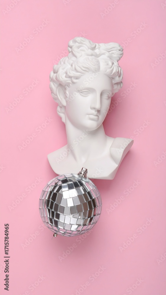 Do Szkoły Tańca - A white bust statue with a disco ball #1715784965