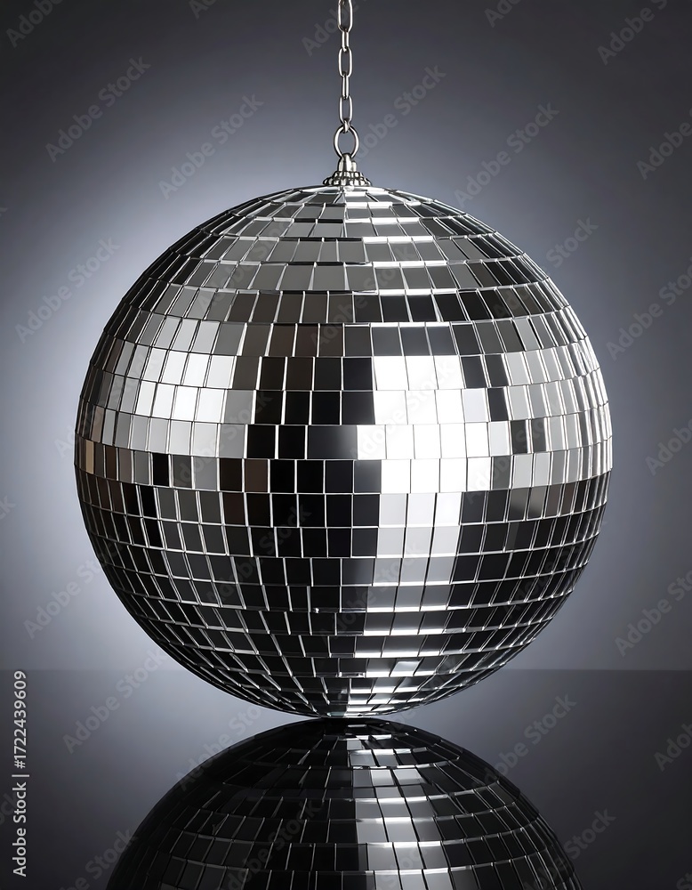Do Szkoły Tańca - A reflective disco ball hangs suspended against a dark background #1722439609