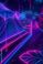 • A futuristic campsite glows with neon pink and blue lights, featuring illuminated tents, a glowing path, and vibrant plants under a dark night sky.