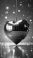 • Heart-shaped disco ball hanging in a vibrant pink and purple space