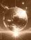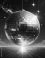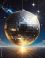 • Giant Disco Ball Illuminates Cosmic Night Sky Above Reflective Dance Floor.