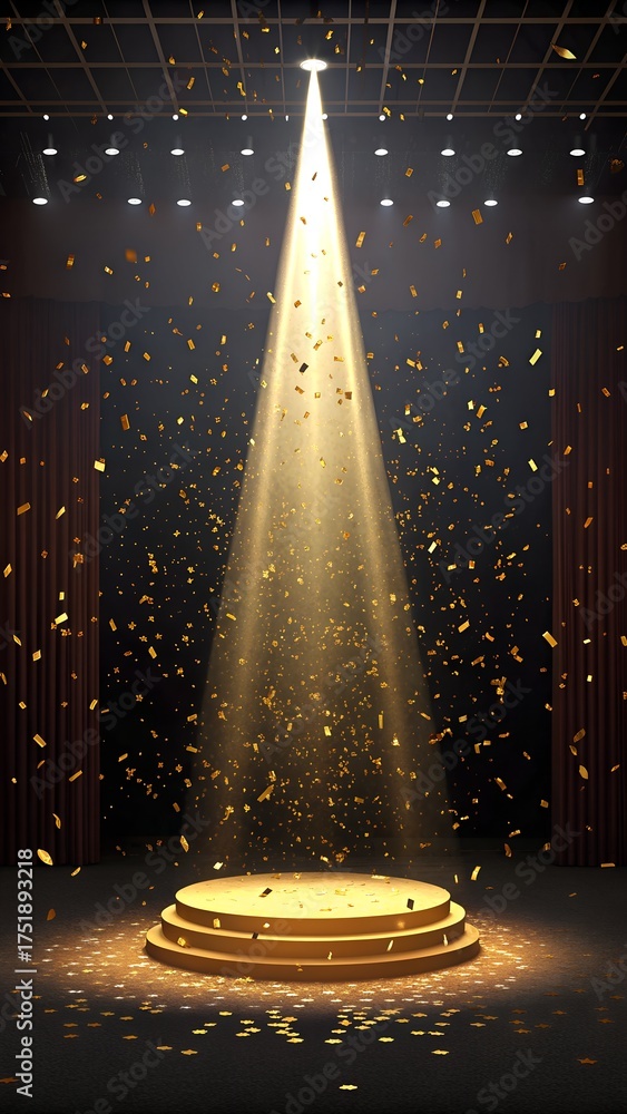 Do Szkoły Tańca - spotlight on stage with gold party popper #1751893218