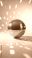 • Silver disco ball casting reflections on neutral background, modern New Year atmosphere
