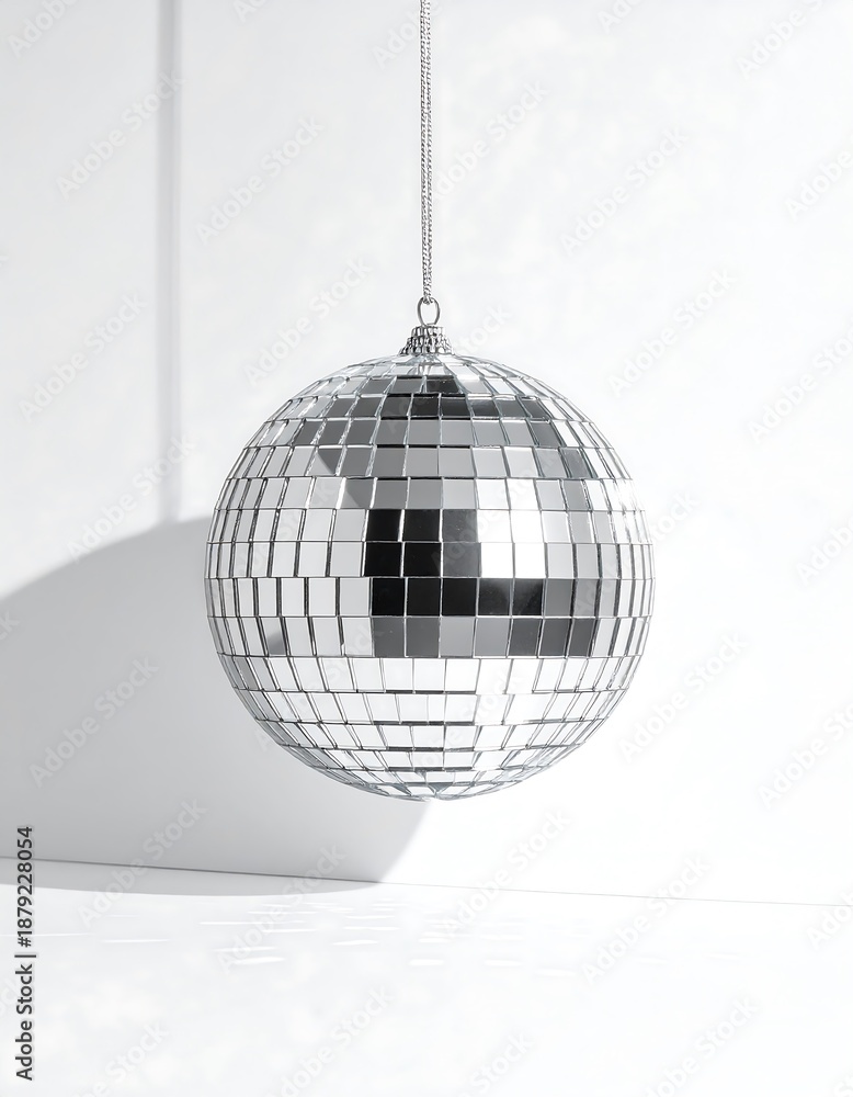 Do Szkoły Tańca - Shiny disco ball hanging against white #1879228054