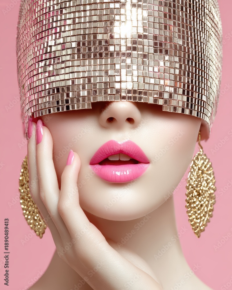 • Glamorous Woman in Disco Visor: Beauty, Fashion, and Modern Portrait