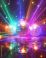 • Vibrant disco balls spinning under colorful laser lights at a lively party