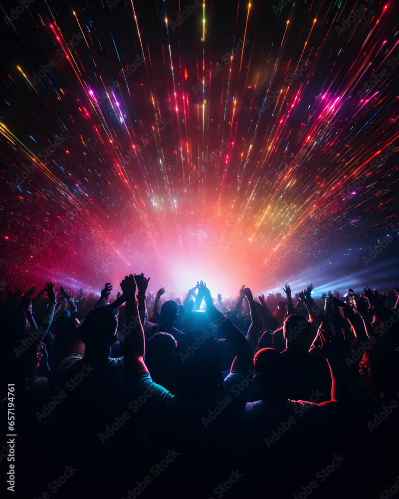 Do Szkoły Tańca - A crowd of people in a music event, dancing in neon color lights #657194761