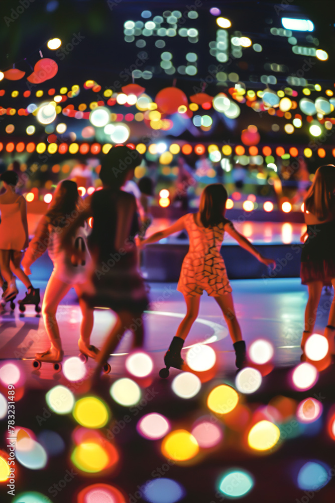 Do Szkoły Tańca - 1970s roller disco: Colorful lights illuminate the rink as skaters groove to disco beats,... #783231489