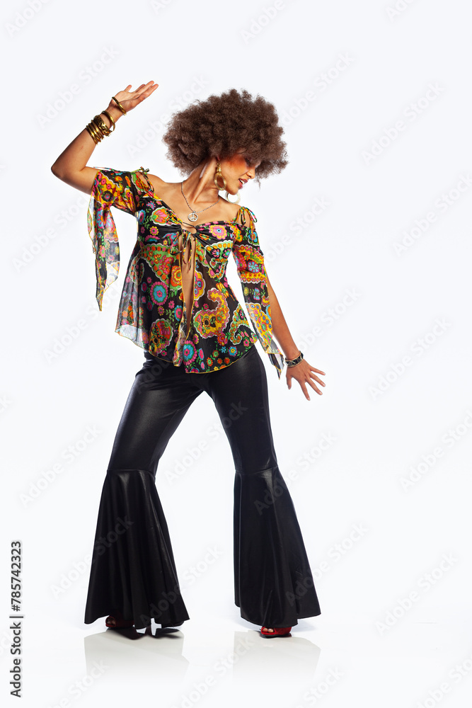 Do Szkoły Tańca - White background studio photo of an ethnic girl disco dancing. #785742323