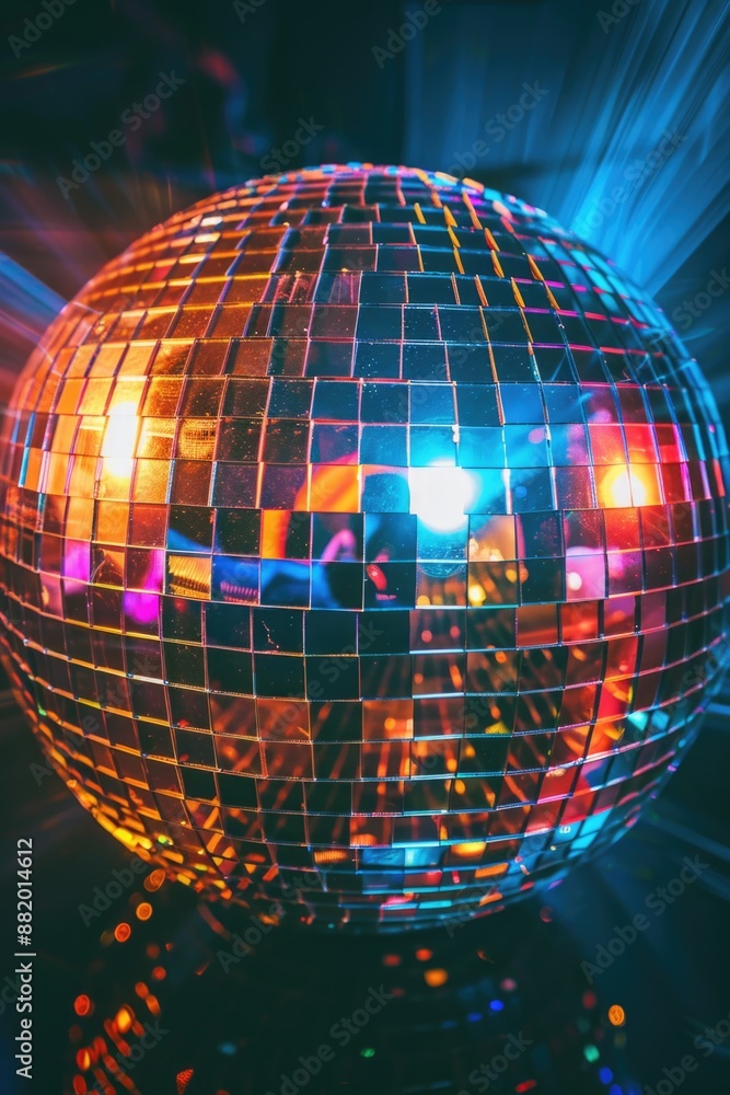 • A shiny disco ball with bright lights in the background, perfect for parties and celebrations