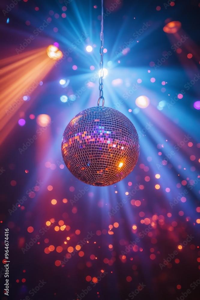 Do Szkoły Tańca - a shiny disco ball suspended in the air covered with many small mirrors that reflect colorful lights #964674416