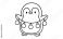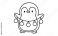 • Cute penguin holding christmas lights in black and white outline drawing