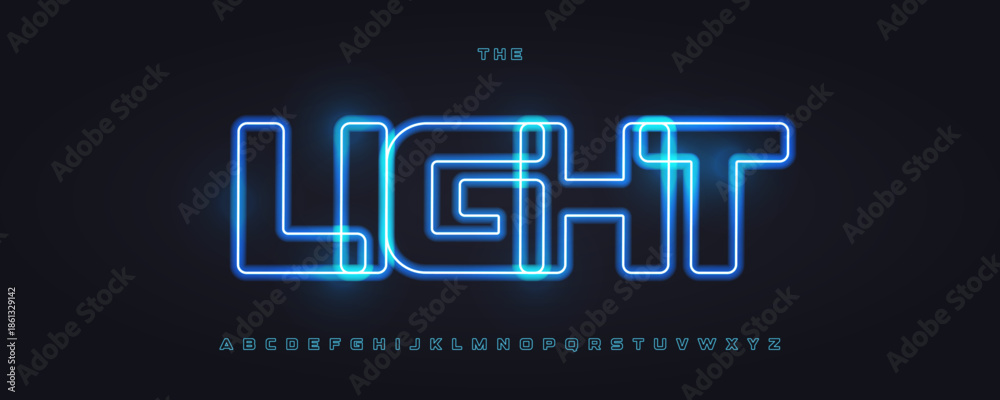 • Cyber Tech Font Logo Alphabet Vector Neon Light Effect Letter Set Modern Typography, Glowing Typographic Design for Title Text, Typo Poster Headline, Led Contour Sans Serif Fonts. Vector Typeface