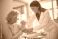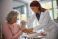 Senior woman getting her blood pressure measured by pharmacist in drugstore.