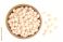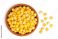 corn seeds in ceramic bowl isolated on white background. Top view. Flat lay