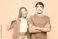 Owoce - Young happy couple friends family man woman wears shirt casual clothes together put hand on... #1957465578