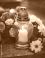 Kwiaty - Palący się znicz i kwiaty na grobie na cmentarzu #1274028506