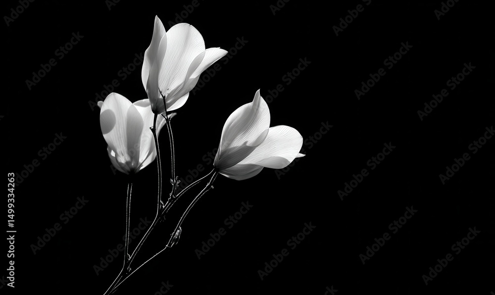 Kwiaty - Trzy białe kwiaty na czarnym tle #1499334263
