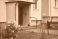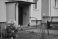 Kwiaty - kot siedzący na schodach klatki blokowej ,kot #389670261