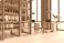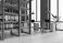 • Modern corporate office interior with desks, shelves, organized binders, large windows, light contemporary design and spacious work room. 3D Rendering