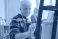 • Senior Caucasian man painting on canvas in classroom setting, focused on brushwork, participating in art education activity with older Caucasian woman painting in background