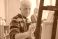 Pejzaże - Senior Caucasian man painting on canvas in classroom setting, focused on brushwork, participating... #1927174473