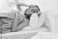 Sport - Unhealthy young woman lying in bed with closed eyes, holding wet towel on her head, suffering... #1778064804