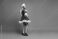 Sport - Cheerful woman in red Santa dress with fur trim posing on blue studio backdrop for Christmas... #1782383595